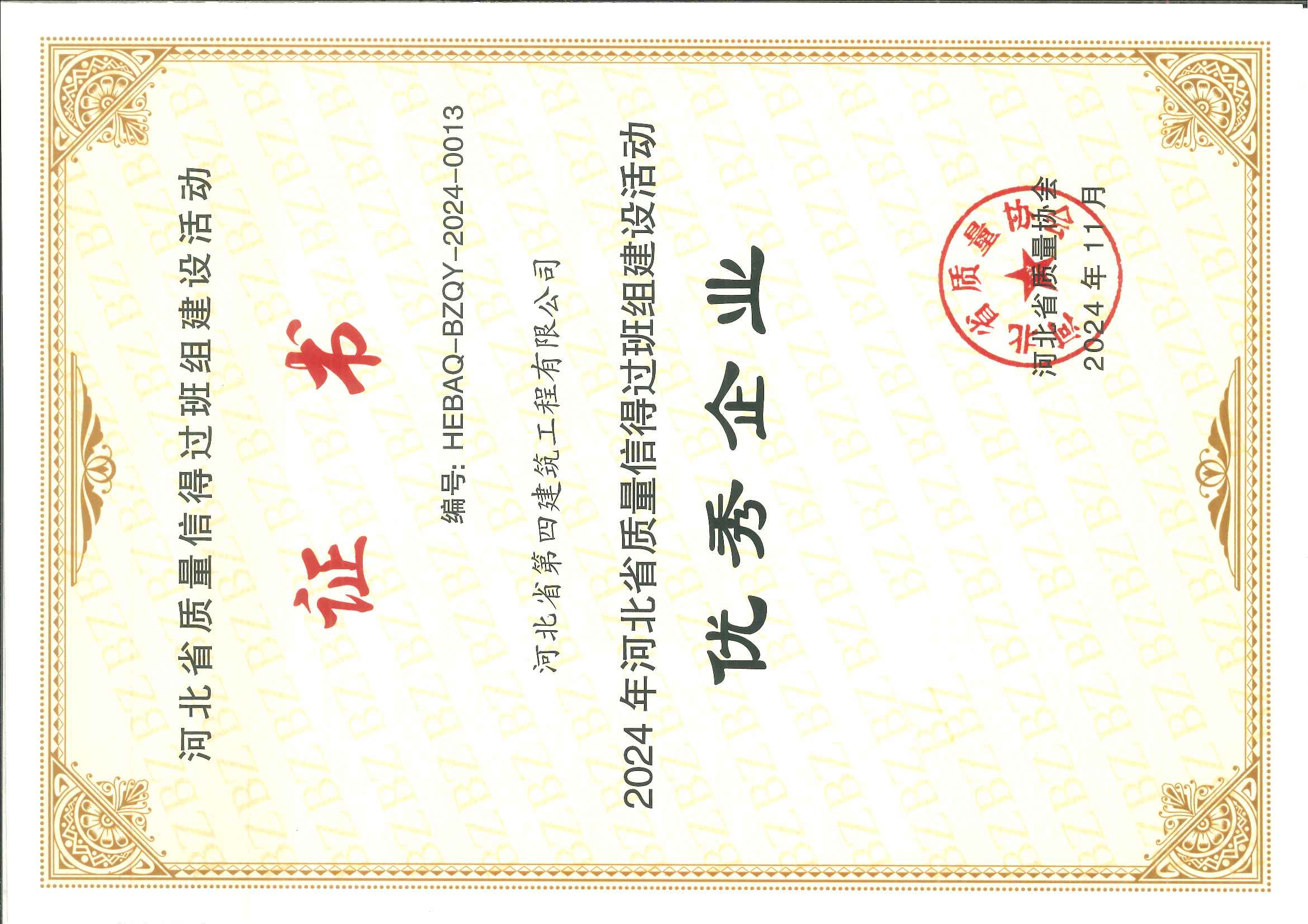 河北四建:2024年河北省質(zhì)量管理小組活動(dòng)優(yōu)秀企業(yè)