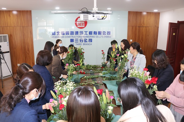 “第一次自己動手插花,我向你們好好學(xué)學(xué)……”大家有的忙著挑選花枝,有的在一旁邊看邊學(xué)。平時忙于工作,此時此刻都全身心地投入到插花活動中,大家發(fā)揮想象力,修剪花枝、整理花朵、構(gòu)思插花位置。一會兒時間,普通的花葉、枝條,經(jīng)過大家精巧的修飾與綁扎之后,一捧捧絢爛而生動的花籃河北四建呈現(xiàn)在眼前,令人賞心悅目,大家捧著自己親手制作的河北四建,臉上洋溢著滿滿的幸福。