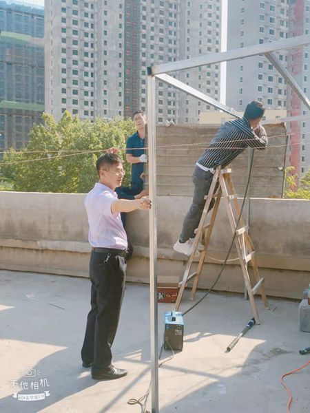 說(shuō)干就干,立即行動(dòng)。劉保國(guó)和左建華對(duì)樓頂平臺(tái)實(shí)地量測(cè),記錄好尺寸。兩人一邊量著,一邊比劃著,對(duì)所需的材料做到心中有數(shù)。“采購(gòu)材料的事兒,就交給我了?!痹O(shè)備材料科科長(zhǎng)史永濤拿出電話就開(kāi)始聯(lián)系起來(lái)。材料就位后,考慮到有些電焊的活兒需要專(zhuān)業(yè)的工人,劉保國(guó)趕緊聯(lián)系了一名電焊工。大家分工合作,你遞材料、我扶鋼管,你安裝、我綁線,邊干邊聊。30多度的高溫下,大家的額頭上直冒汗,但干勁兒絲毫沒(méi)減。防雨棚安裝完畢,新買(mǎi)的洗衣機(jī)放置到位,大家松了一口氣。“今天的大工程結(jié)束了,趁著這次機(jī)會(huì),咱們把宿舍的門(mén)窗都檢查一遍?!眲⒈?guó)說(shuō)道,抬手擦了擦汗水,便拿起工具向宿舍走去。大家對(duì)宿舍的門(mén)窗逐一進(jìn)行檢查,對(duì)破洞的紗窗進(jìn)行了更換,對(duì)門(mén)上松動(dòng)的把手進(jìn)行了維修。