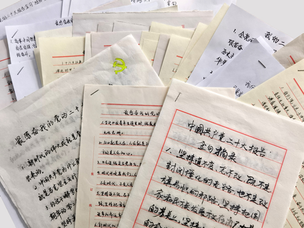 為進(jìn)一步加深黨員職工對(duì)黨的二十大報(bào)告的學(xué)習(xí)理解,推進(jìn)黨的二十大精神進(jìn)頭腦、進(jìn)思想,2022年11月26日至12月10日,公司黨委組織開展“最感奮我的黨的二十大報(bào)告金句”推薦活動(dòng)。 通知一經(jīng)下發(fā),雖處疫情居家辦公期間,但大家的積極性絲毫不受影響。公司領(lǐng)導(dǎo)班子成員率先垂范,結(jié)合參加國(guó)務(wù)院國(guó)資委培訓(xùn)中心學(xué)習(xí)貫徹黨的二十大精神網(wǎng)絡(luò)培訓(xùn)班學(xué)習(xí)收獲,原原本本學(xué)習(xí)黨的二十大報(bào)告原文,共推薦金句112條。黨員職工認(rèn)真學(xué)習(xí)黨的二十大報(bào)告,深刻理解報(bào)告中的新論斷、新要求、新部署,懷著崇敬的心情,一字一句工整地抄寫著金句,并表示,作為國(guó)企職工,要深入學(xué)習(xí)貫徹黨的二十大精神,立足本職、積極工作。十分公司王帥表示,通過摘抄黨的二十大報(bào)告金句,又是一次原原本本學(xué)習(xí),通過抄寫,對(duì)報(bào)告內(nèi)容又有新理解、新收獲,中國(guó)共產(chǎn)黨為人民謀幸福,從來都是動(dòng)真情、出實(shí)招、辦實(shí)事?!白鳛橐幻h員,要當(dāng)好干事先鋒員,以奮發(fā)有為的姿態(tài)抓工作落實(shí)。對(duì)照黨的二十大的法治要求,響應(yīng)黨的二十大的號(hào)召,我們要做社會(huì)主義法治的自覺遵守者、堅(jiān)定捍衛(wèi)者?!绷止緞⑸f。五分公司丁江霞更是在認(rèn)真抄寫黨的二十大報(bào)告原文的同時(shí),把自己朗誦的黨的二十大報(bào)告金句錄制下來,發(fā)送到自己的社交平臺(tái),讓更多的人投身到黨的二十大報(bào)告學(xué)習(xí)中來。 本次活動(dòng),每名黨員職工分段分條推薦并把黨的二十大報(bào)告中讓自己最受感動(dòng)、最受啟迪、最受鼓舞、最受激勵(lì)的原文,用筆抄寫到紙上,每人最少10條,不設(shè)上限。用腦思考、用手抄,手腦并用,學(xué)習(xí)更高效。經(jīng)統(tǒng)計(jì),共計(jì)523名黨員職工參與,累計(jì)推薦金句5530條,最終公司黨委擇優(yōu)評(píng)選出19個(gè)河北四建給予表彰獎(jiǎng)勵(lì)。(黨委宣傳部)