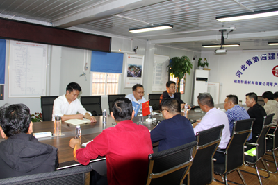 在會議室,董富強與項目部管理人員進行了工作交流,對各項工作給予肯定,強調(diào)項目部要提高站位,從嚴要求,以“四個樹”為工作著力點,在安全、質(zhì)量、進度、文明施工方面再發(fā)力,再提升,提高項目管理效果。一是安全樹紅線,要抓住公司第17次“百日安全生產(chǎn)無事故倒計時”活動契機,強化安全責任,樹牢“紅線意識”,從嚴落實安全制度,工作要做細,杜絕一切安全事故發(fā)生。高支模專項方案屬于超危大項目,一定要按照規(guī)范要求組織施工。二是質(zhì)量樹品牌。要弘揚“工匠精神”,做到標準化施工,確保混凝土密實度,結(jié)構(gòu)幾何尺寸符合圖紙設(shè)計要求,切實做好質(zhì)量通病防范措施,做到精益求精,打造好四建品牌。三是進度樹形象,要增強履約意識,倒排工期,制定詳細的進度計劃。要發(fā)揮四建鐵軍精神,抓住目前黃金時間全力施工,打硬仗、打勝仗,確保“115”目標實現(xiàn),展現(xiàn)河北四建特級企業(yè)形象。四是文明施工樹標桿,現(xiàn)場各項文明施工要落實到位,做好揚塵防治工作,達到觀摩工地標準。