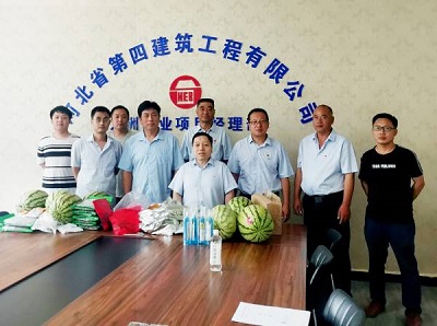 8月11日上午,公司黨委副書記、工會主席李懷生到二分公司九洲項目部,對炎炎夏日奮戰(zhàn)在一線的全體職工進行慰問,二分公司黨總支部書記、工會主席孫立鋒一同參加。
