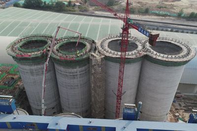 水泥礦粉及儲存庫由兩個連體庫組成,庫壁高35.05米、內徑15米,滑模施工在7月下旬正式開始。業(yè)主為了搶回疫情耽誤的工期,要求庫壁滑模必須在9月30日以前完成。項目部積極面對,多措并舉,克服了工期緊張、雨季施工以及滑模質量控制等諸多困難,最終按照業(yè)主要求提前完成了滑模任務,得到了業(yè)主和監(jiān)理的一致好評。