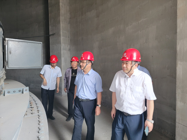 一行人首先來到項(xiàng)目后續(xù)承接的60m精煤堆棚工程前,董富強(qiáng)詢問了工程進(jìn)展情況,聽到項(xiàng)目經(jīng)理祁淼匯報(bào)經(jīng)過一個(gè)月?lián)尮ぃこ桃呀?jīng)竣工投入使用后,他對(duì)項(xiàng)目做出的成績(jī)給予肯定。隨后,一行人來到備煤系統(tǒng)配煤室筒倉工程,作為業(yè)主方高度關(guān)注的施工內(nèi)容,董富強(qiáng)非常關(guān)心工程施工情況,他詳細(xì)詢問了業(yè)主投產(chǎn)節(jié)點(diǎn)要求以及當(dāng)前施工進(jìn)度完成情況,細(xì)心地進(jìn)行完成情況與節(jié)點(diǎn)計(jì)劃的對(duì)比,多次強(qiáng)調(diào)務(wù)必保證工期履約。在了解現(xiàn)場(chǎng)整體施工情況后,針對(duì)倉上鋼結(jié)構(gòu)吊裝等高空作業(yè),董富強(qiáng)特別強(qiáng)調(diào)要毫不松懈抓安全,提出三個(gè)“必須”:一是工人安全防護(hù)措施必須配備到位;二是項(xiàng)目管理人員必須現(xiàn)場(chǎng)旁站管理;三是項(xiàng)目部必須做好后勤保障。他很注重后勤服務(wù)細(xì)節(jié),指出施工現(xiàn)場(chǎng)距離項(xiàng)目部較遠(yuǎn),正值高溫作業(yè),項(xiàng)目部要每天派人運(yùn)送綠豆湯、涼白開、藿香正氣水到施工現(xiàn)場(chǎng),以防工人中暑。