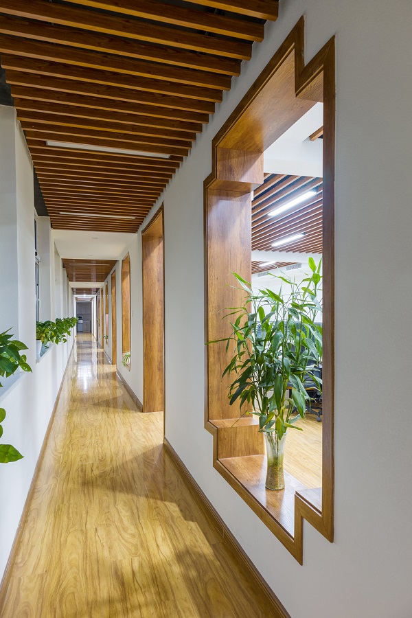由于辦公區(qū)裸露門洞窗洞較多,極具藝術(shù)感,于是在設(shè)計風(fēng)格方面設(shè)計師借鑒了中式古典花窗元素,將四個窗洞設(shè)計為不同造型,曲直轉(zhuǎn)折均一絲不茍,淋漓盡致地展現(xiàn)出中式古典花窗的特點,使得簡潔的空間多了一絲東方韻味。這樣舒適雅致的辦公環(huán)境更能激發(fā)設(shè)計師的創(chuàng)作靈感,讓設(shè)計師創(chuàng)作出更好的設(shè)計河北四建。
