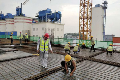 同心協(xié)力完成節(jié)點(diǎn)任務(wù)。水泥配料站、水泥粉磨是業(yè)主目前關(guān)注重點(diǎn),要求8月3日前筒倉滑模到14.4米庫底板、水泥粉磨11.5米平面混凝土澆筑完,為安裝輥壓機(jī)、減速機(jī)等設(shè)備創(chuàng)造條件。時(shí)間緊任務(wù)急,持續(xù)的降雨反而更加激發(fā)了項(xiàng)目部的斗志,水泥配料站筒倉施工采用滑模工藝,滑模平臺(tái)上鋼筋綁扎、預(yù)留預(yù)埋安裝、混凝土澆筑、庫壁壓面等各道工序相互配合,工種銜接默契。雖然雨水經(jīng)常光顧,但是大家沒有絲毫懈怠,熱火朝天的干勁兒始終未減。水泥粉磨車間樓層高、場(chǎng)地狹窄給施工造成困難,項(xiàng)目部采用白天作業(yè)面施工,晚上班組倒運(yùn)材料等方法,保證施工進(jìn)度。截至7月30日上午,水泥配料站14米庫底板、水泥磨11.5米平面、水泥及礦粉儲(chǔ)存基礎(chǔ)筏板均已澆筑完混凝土,為項(xiàng)目下一步施工創(chuàng)造了積極有利條件。(三分公司)