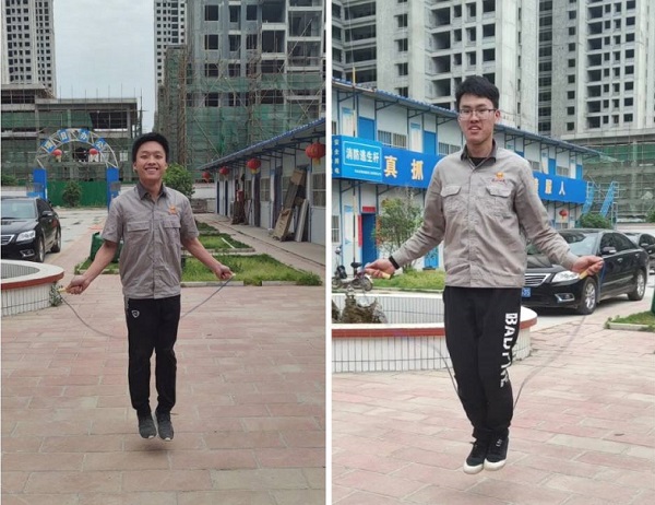 各項(xiàng)目部根據(jù)場地條件自行制定比賽內(nèi)容,讓職工們自由選擇,有羽毛球、跳繩、踢毽子等。所有活動(dòng)中比較熱鬧的有許昌項(xiàng)目部的跳繩比賽,青年職工回軍帥、唐文耀、李詩奇、劉彥、肖博文等兩人搖、多人魚貫順序跳的長繩賽,李政良,高巖單人雙手搖、自搖自跳的短繩賽,他們配合協(xié)條性好,單次跳的數(shù)量最多,迎來場外職工陣陣喝彩。