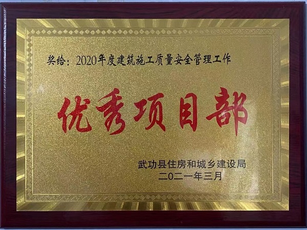 4月25日,武功縣住房和城鄉(xiāng)建設(shè)局表彰了2020年度建筑施工、房地產(chǎn)開(kāi)發(fā)和物業(yè)管理工作先進(jìn)集體和先進(jìn)個(gè)人,四分公司陜西金沙河項(xiàng)目榮獲“2020年度建筑施工質(zhì)量安全管理工作優(yōu)秀項(xiàng)目部”稱(chēng)號(hào)。
