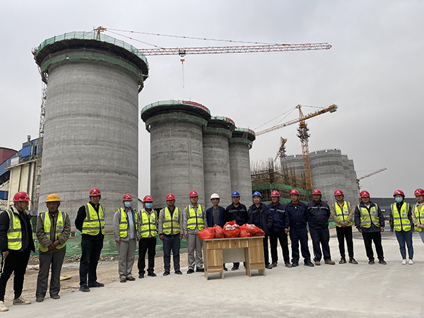 從2020年12月5日開(kāi)始到2021年2月底,項(xiàng)目所在地政府連續(xù)發(fā)布大氣污染預(yù)警,項(xiàng)目斷斷續(xù)續(xù)停工達(dá)一個(gè)月,導(dǎo)致工期延誤。項(xiàng)目部急業(yè)主之所急,預(yù)警結(jié)束后,立即對(duì)各房號(hào)施工重新進(jìn)行細(xì)致策劃,制定詳細(xì)的月計(jì)劃、周計(jì)劃、日計(jì)劃,自3月4日起按照部署緊鑼密鼓地展開(kāi)水泥儲(chǔ)存庫(kù)滑模工程施工。在勞力組織上,項(xiàng)目部重新梳理各工序,進(jìn)一步優(yōu)化配置各作業(yè)工種,同時(shí)實(shí)行24小時(shí)兩班倒連續(xù)施工。混凝土連續(xù)澆筑是滑模施工的關(guān)鍵,項(xiàng)目部將用于混凝土垂直運(yùn)輸?shù)钠?chē)泵增加到3臺(tái),筒倉(cāng)滑模以每天3.5米的速度持續(xù)快速滑升。在粉煤灰?guī)旎J┕て陂g,有一半的天數(shù)都在下雨,風(fēng)力等級(jí)都在三級(jí),大家迎難而上,喊出了“刮風(fēng)當(dāng)電扇,下雨當(dāng)流汗,大伙拼命干”的口號(hào),充分發(fā)揚(yáng)四建職工的鐵軍精神,齊心協(xié)力搶抓施工。項(xiàng)目部全體人員勠力同心、通力合作,自滑模開(kāi)始至4月28日水泥配料站最后一方混凝土澆筑完成,歷時(shí)56天,提前4天完成施工任務(wù)。