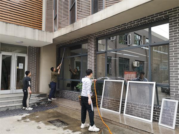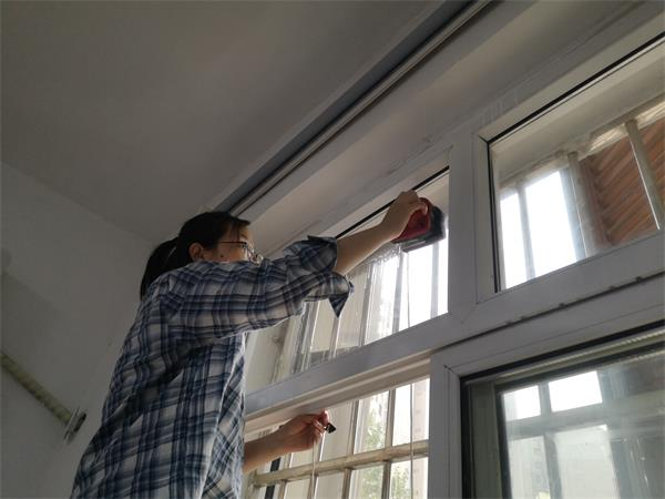 本次活動主要針對河北四建的公共衛(wèi)生區(qū)域。先是擦玻璃,職工孟榮榮說:“用報紙擦吧,以前都用報紙擦,擦得很干凈。”“那都是老黃歷了,現(xiàn)在都用擦玻璃神器啦,我早準備好了。”趙蓓說。只見趙蓓拿出自帶了“刮水”功能的擦玻璃神器,沾上洗潔精水,吸附到玻璃窗上,不一會兒就把玻璃擦得干干凈凈。一樓設(shè)計室的外窗高,綜合辦準備了加長桿的玻璃刮子,司南帶領(lǐng)幾名青年職工認真擦拭,使窗戶變得潔凈透亮。接下來打掃辦公區(qū)域,職工們不放過一個盲區(qū)、不落下一個角落。大家對辦公室、樓道、衛(wèi)生間的衛(wèi)生死角進行清掃、噴灑消毒;對打印機、飲水機、儲物柜等公用設(shè)備進行擦拭消毒;對門把手、沖水按鈕、水龍頭開關(guān)等擦拭消毒。室內(nèi)清理完后清理小花園,大家拿著掃把、鏟子等工具,清掃拔除雜草,撿拾花池的雜物,清理衛(wèi)生死角,經(jīng)過兩個小時的勞動,辦公環(huán)境內(nèi)外煥然一新。