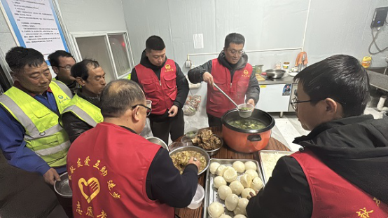 項(xiàng)目務(wù)工人員大多是當(dāng)?shù)卮迕瘢x家較近的務(wù)工人員常自帶飯菜加熱食用。然而,天氣寒冷或加班時(shí),飯菜容易變涼??紤]到這一點(diǎn),項(xiàng)目部志愿者團(tuán)隊(duì)聯(lián)合食堂師傅,為工人們準(zhǔn)備了熱餐器具,并額外提供免費(fèi)雞蛋湯,讓大家在繁忙的施工之余,感受到家一般的溫暖。這一舉措不僅讓工友們吃得安心、干得舒心,更激發(fā)了大家的工作熱情,為施工生產(chǎn)注入了強(qiáng)勁動(dòng)力。