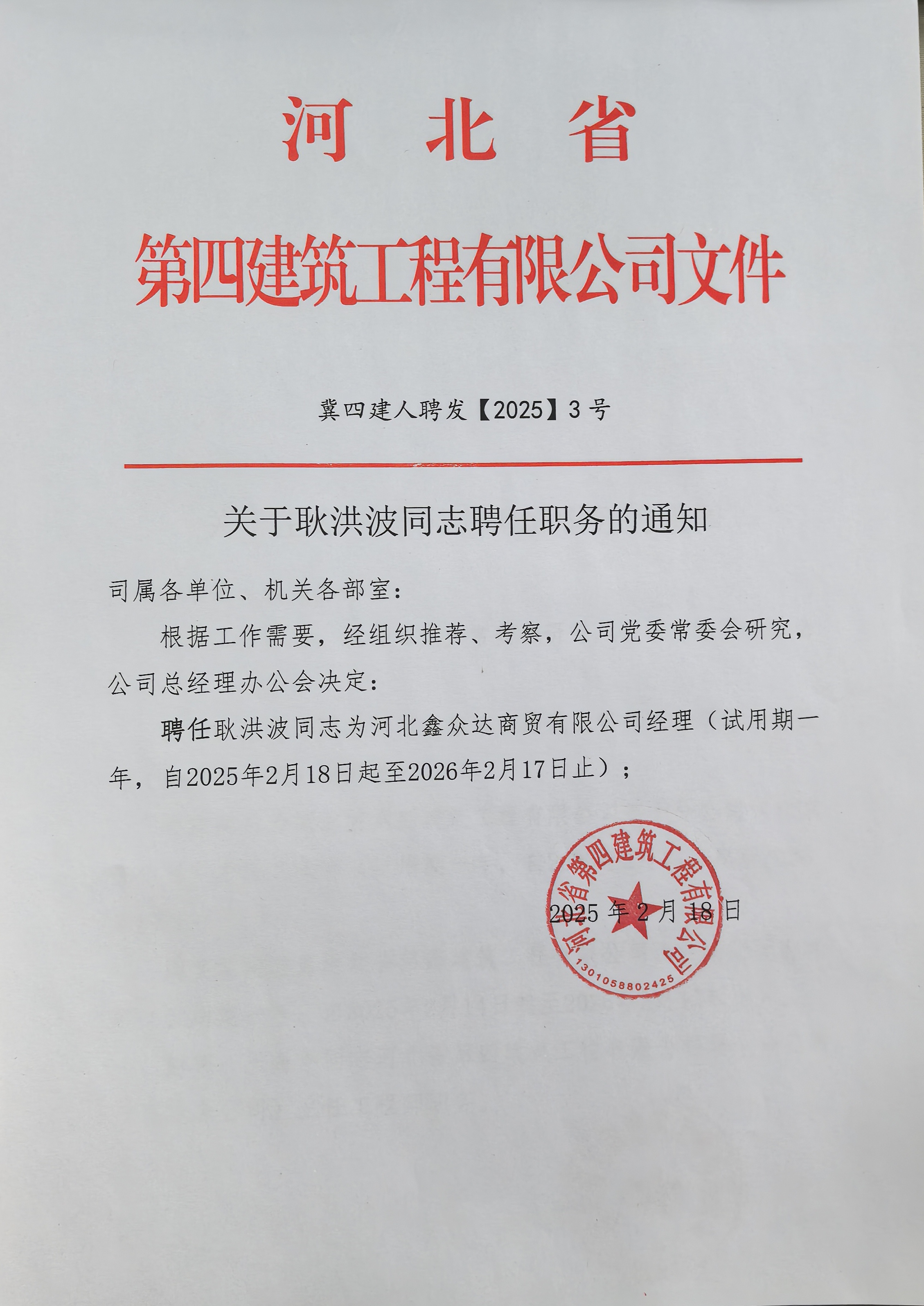 河北四建:關(guān)于劉元振等同志聘任職務(wù)的通知